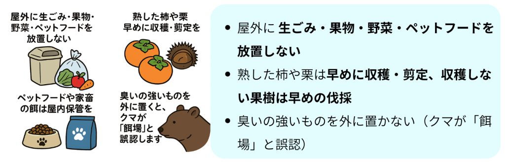 クマを呼び寄せないために地域内でできること