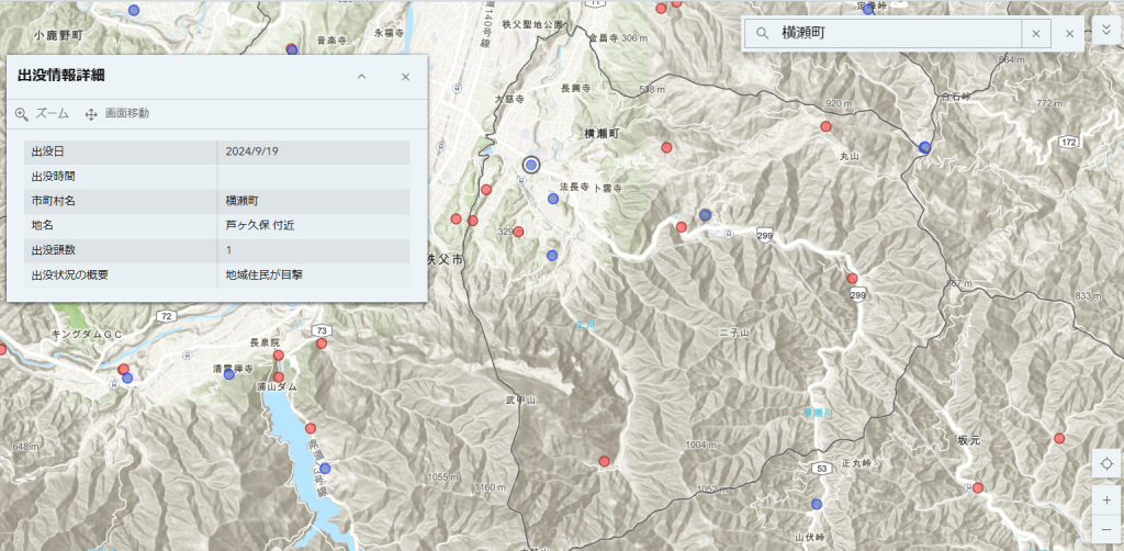 クマの出没情報:埼玉県ツキノワグマ出没マップ