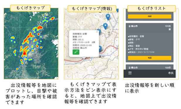 ○ もくげきマップ:クマの目撃地点を地図上に表示