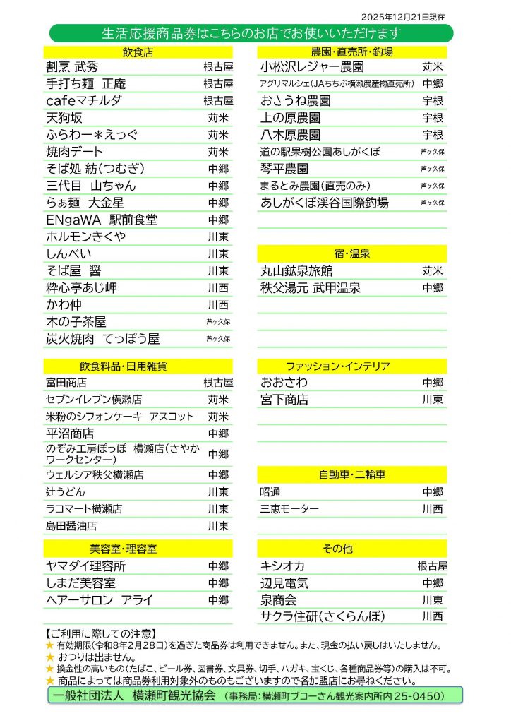 最新の取扱店情報は(一社)横瀬町観光協会のホームページをご覧ください。https://www.yokoze.org/2025/12/51633/